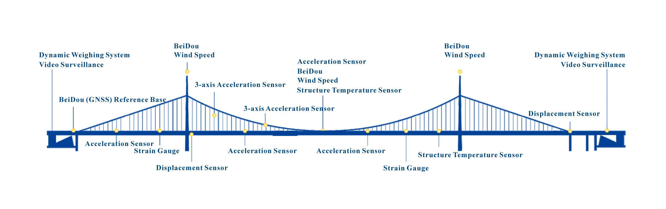 Utilizzando vari sensori, dispositivi di acquisizione dati e apparecchiature di trasmissione sulle strutture del ponte, viene condotta una misurazione automatica a lungo termine sugli effetti del carico del ponte, sugli effetti ambientali e sulle risposte strutturali. I dati misurati vengono trasmessi alla piattaforma cloud tramite tecnologie di comunicazione cablate o wireless, fornendo ai clienti servizi come il monitoraggio remoto della struttura del ponte, l’allarme precoce online, la valutazione delle condizioni e il supporto decisionale.